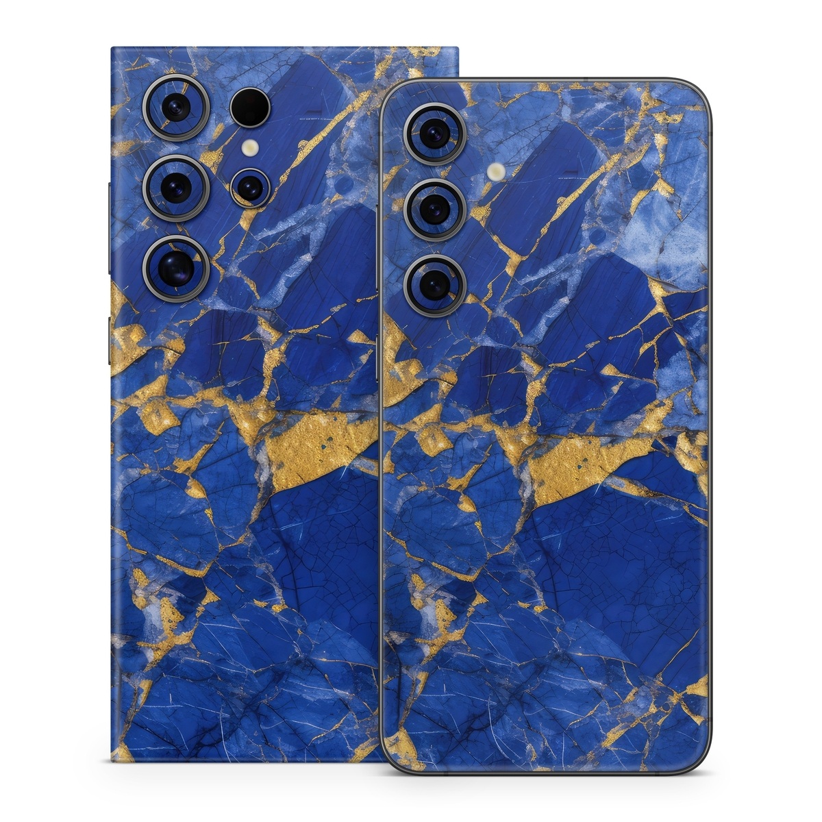 iStyles Samsung Galaxy S24 Series Skin design of Liquid, Blue, Azure, Fluid, Pattern, Electric blue, Tints and shades, Transparent material, Water, Symmetry, with blue, yellow, brown, orange colors, and tagged with patterns, lookslike, deep-blue, metamorphic, rock, semi-precious, stone, antiquity, intense, blue, color.