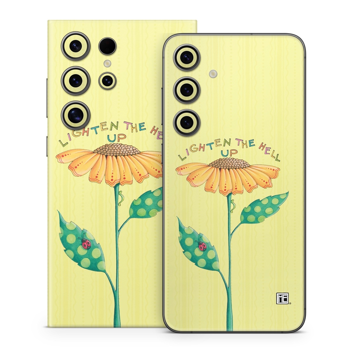 iStyles Samsung Galaxy S24 Series Skin design of Flower, Plant, Botany, Flowering plant, Illustration, Wildflower, Daisy family, Coneflower, Pedicel, with yellow, green, red, black, orange, blue colors, and tagged with signs, flowers, animals, flower, funny, humor, ladybug.