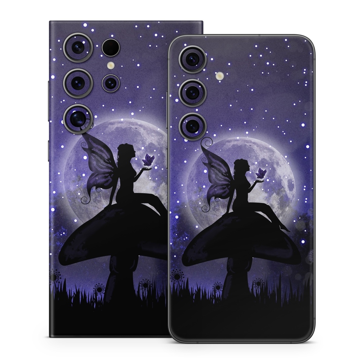 iStyles Samsung Galaxy S24 Series Skin design of Purple, Sky, Moonlight, Cg artwork, Fictional character, Darkness, Night, Illustration, Space, Star, with black, blue, gray, purple colors, and tagged with animals, fantasy.
