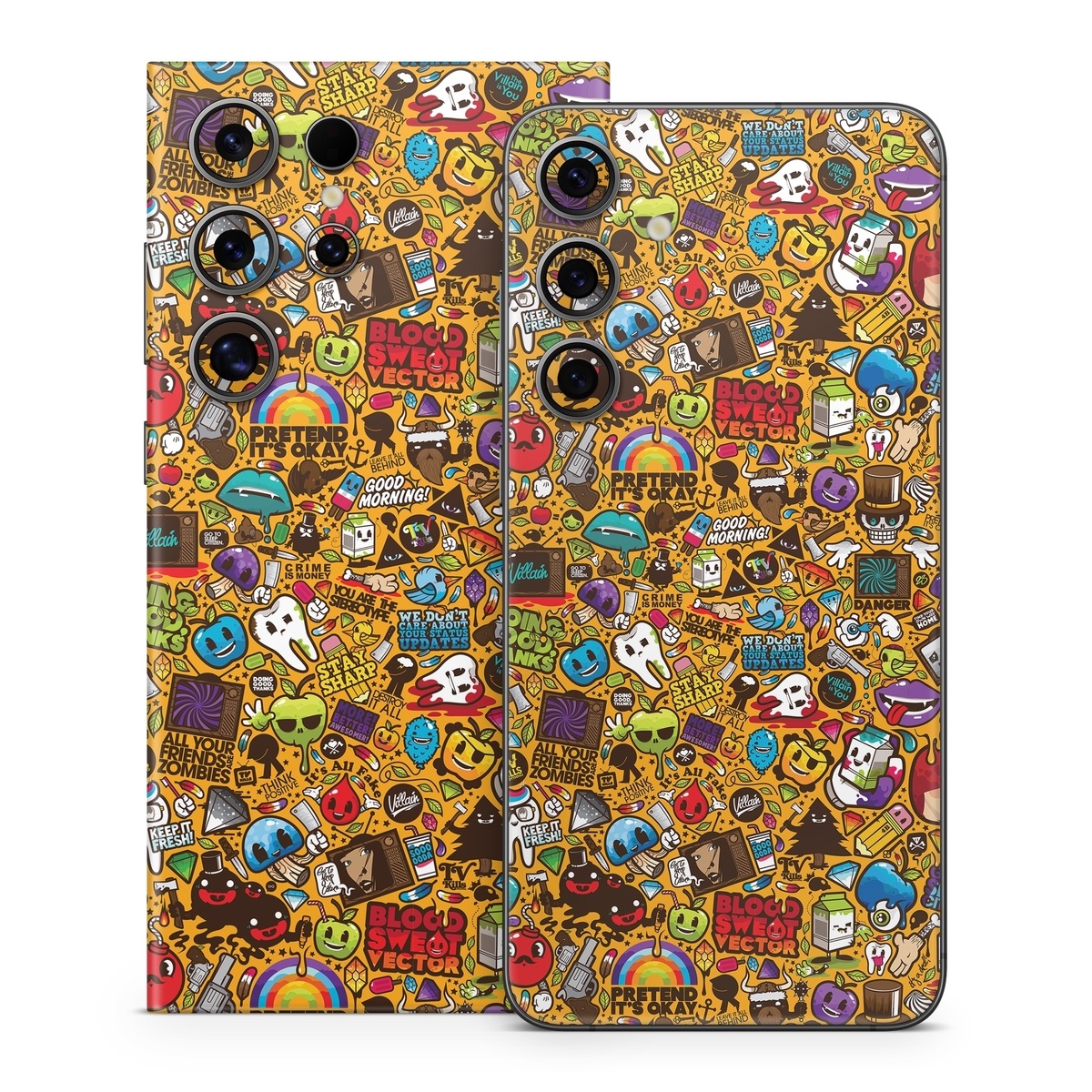 iStyles Samsung Galaxy S24 Series Skin design of Pattern, Psychedelic art, Visual arts, Art, Design, Illustration, Graphic design, Doodle, with black, green, red, gray, orange, blue colors, and tagged with abstract, animals, objects, signs.