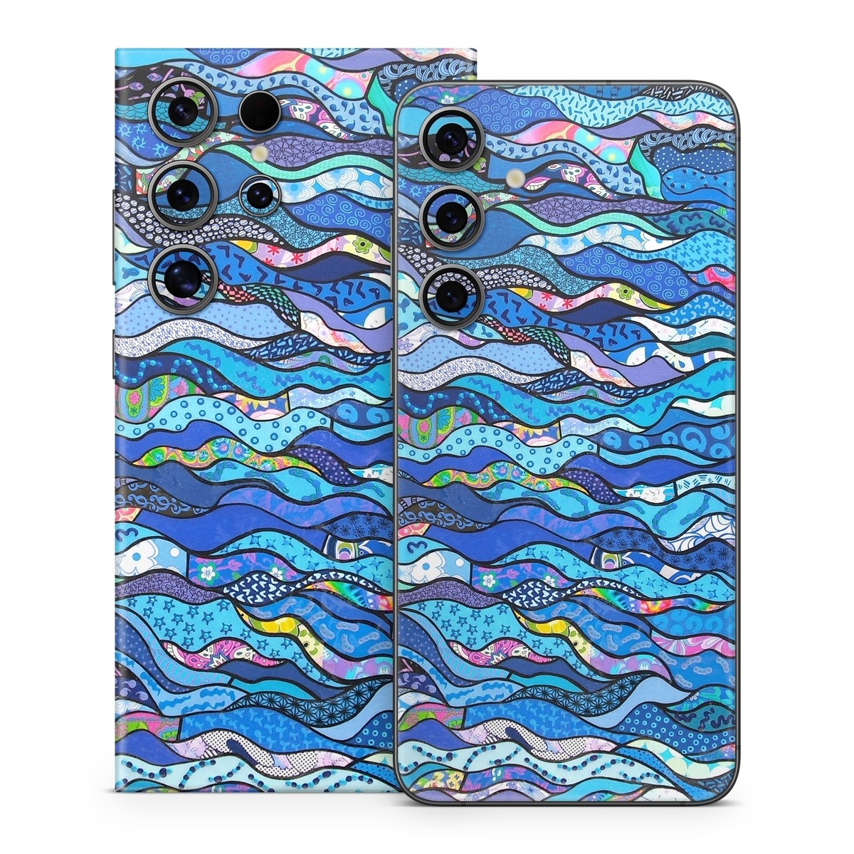 iStyles Samsung Galaxy S24 Series Skin design of Blue, Pattern, Aqua, Water, Line, Design, Textile, Psychedelic art, Electric blue, with blue, black, gray, purple colors, and tagged with abstract, flowers.
