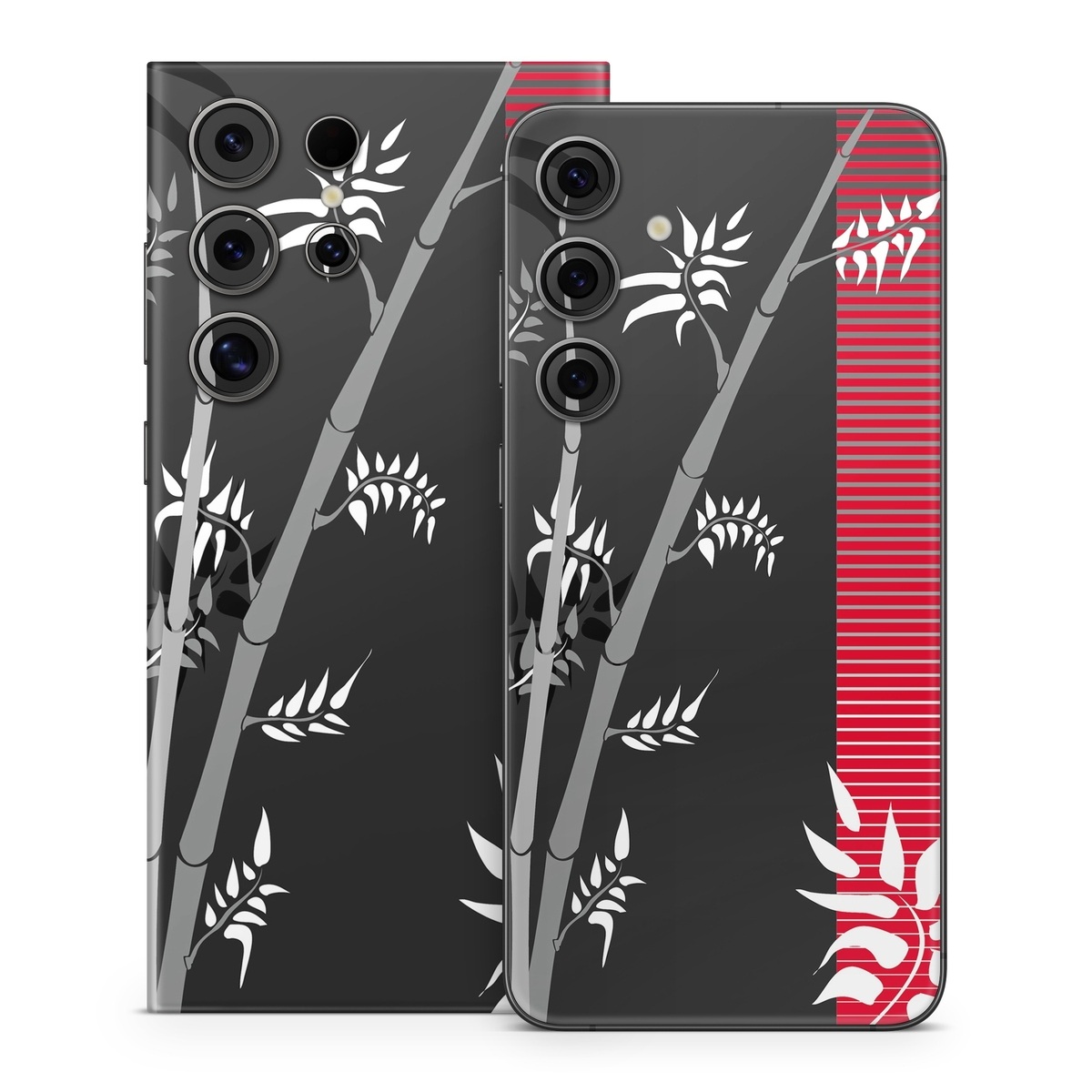 iStyles Samsung Galaxy S24 Series Skin design of Tree, Branch, Plant, Graphic design, Bamboo, Illustration, Plant stem, Black-and-white, with black, red, gray, white colors, and tagged with nature.