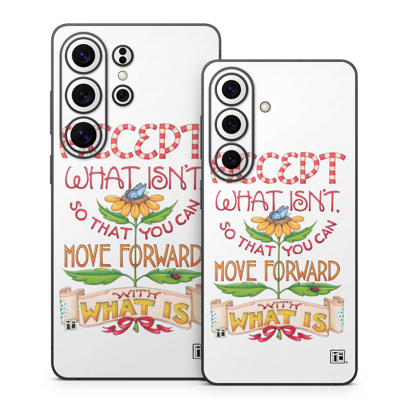 iStyles Samsung Galaxy S26 Series Skin design of Butterfly, Sun-Flower, Leaves, with white, red, green, brown, yellow, blue, orange, black colors, and tagged with signs, flowers, animals, flower, garden, motivation, quote, quotes, sayings, words.