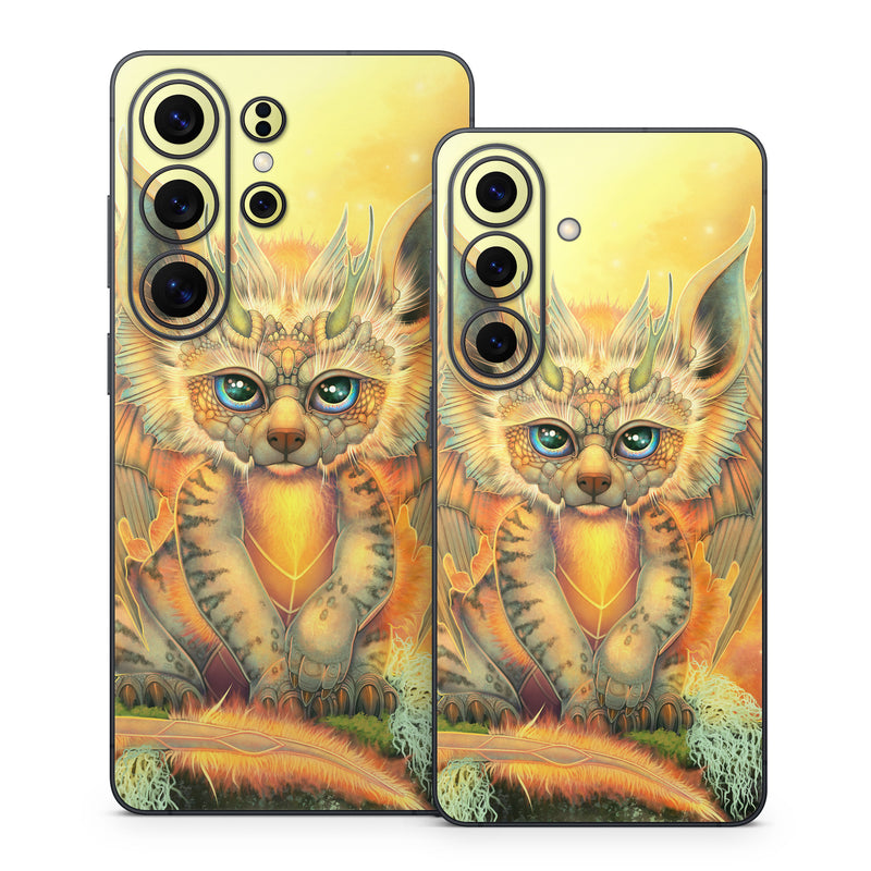 iStyles Samsung Galaxy S26 Series Skin design of Nature, Mammal, Art, Fawn, Owl, Illustration, Tail, Fictional character, Visual arts, Terrestrial animal, with yellow, orange, green, white, black colors, and tagged with fantasy, animals, nature, tiger, stripes, wings, horns, yellow, leaves.