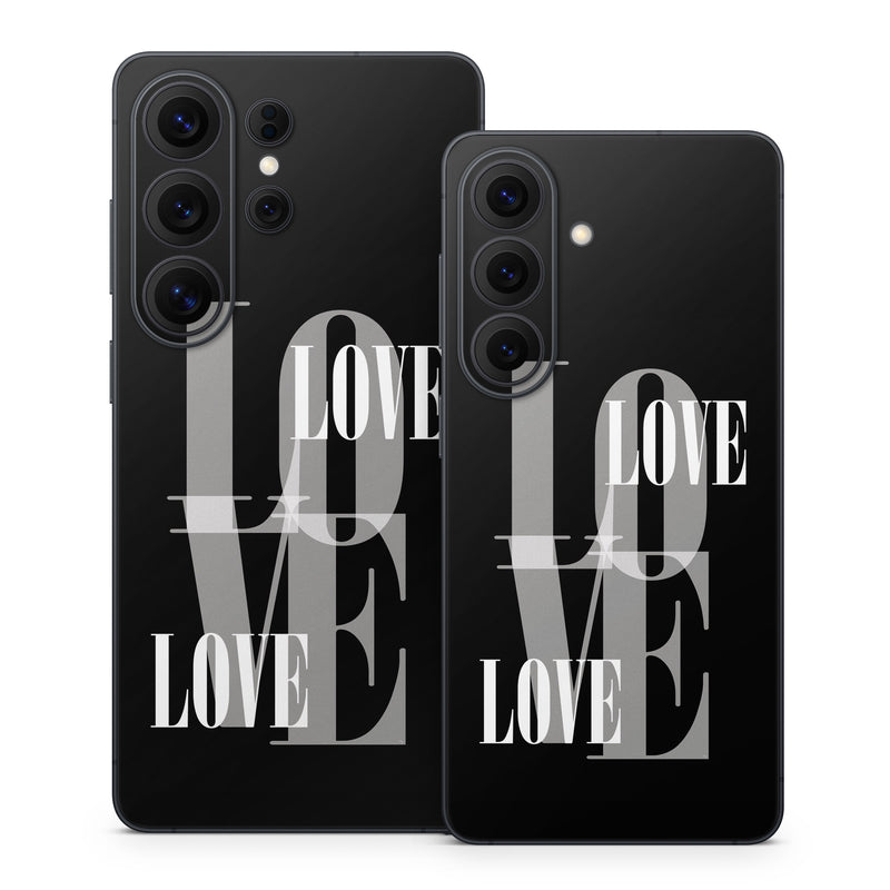 iStyles Samsung Galaxy S26 Series Skin design of Gesture, Font, Sleeve, Darkness, Logo, Brand, Graphics, Illustration, Terrestrial animal, Art, with black, white, gray colors, and tagged with signs, blackandwhite, grey, love, text.