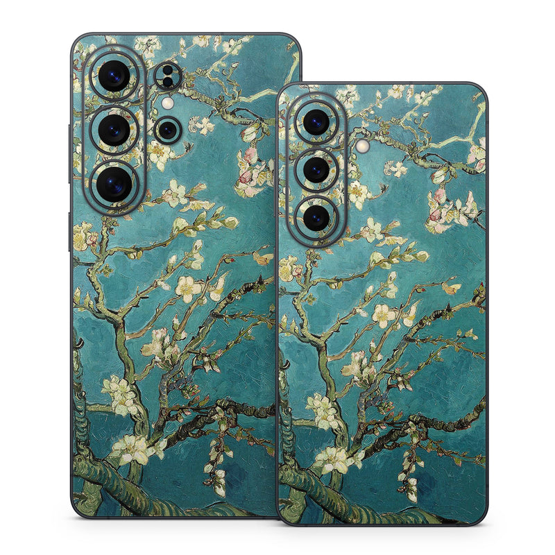 iStyles Samsung Galaxy S26 Series Skin design of Tree, Branch, Plant, Flower, Blossom, Spring, Woody plant, Perennial plant, with blue, black, gray, green colors, and tagged with flowers, fineart.