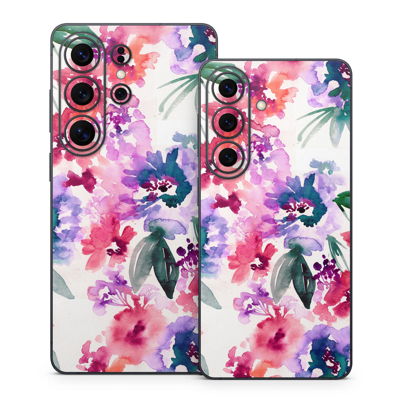 iStyles Samsung Galaxy S26 Series Skin design of Purple, Pattern, Pink, Lilac, Violet, Flower, Watercolor paint, Floral design, Plant, Design, with green, pink, red, purple, white colors, and tagged with flowers, patterns, bloom, blooms, floral, florals, sara, saraberrenson, watercolor.