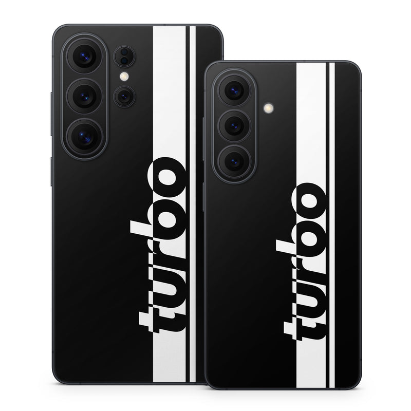 iStyles Samsung Galaxy S26 Series Skin design of Font, Tints and shades, Rectangle, Electric blue, Logo, Brand, Graphics, Pattern, Darkness, Monochrome photography, with black, white colors, and tagged with signs, lookslike, turbo, racecar.