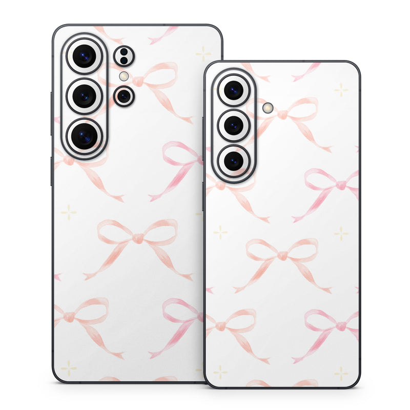 iStyles Samsung Galaxy S26 Series Skin design of Textile, Rectangle, Pink, Motif, Font, Magenta, Symmetry, Pattern, Art, Peach, with white, pink, orange colors, and tagged with patterns, objects, ribbon, showlace, pretty.