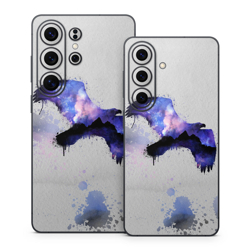iStyles Samsung Galaxy S26 Series Skin design of Blue, Watercolor paint, Purple, Water, Graphic design, Illustration, Art, Ink, Painting, Electric blue, with gray, white, blue, black, purple colors, and tagged with animals, nature, space, animals, bird, eagle, falcon, hawk, moon, nature, night, stars, watercolor.