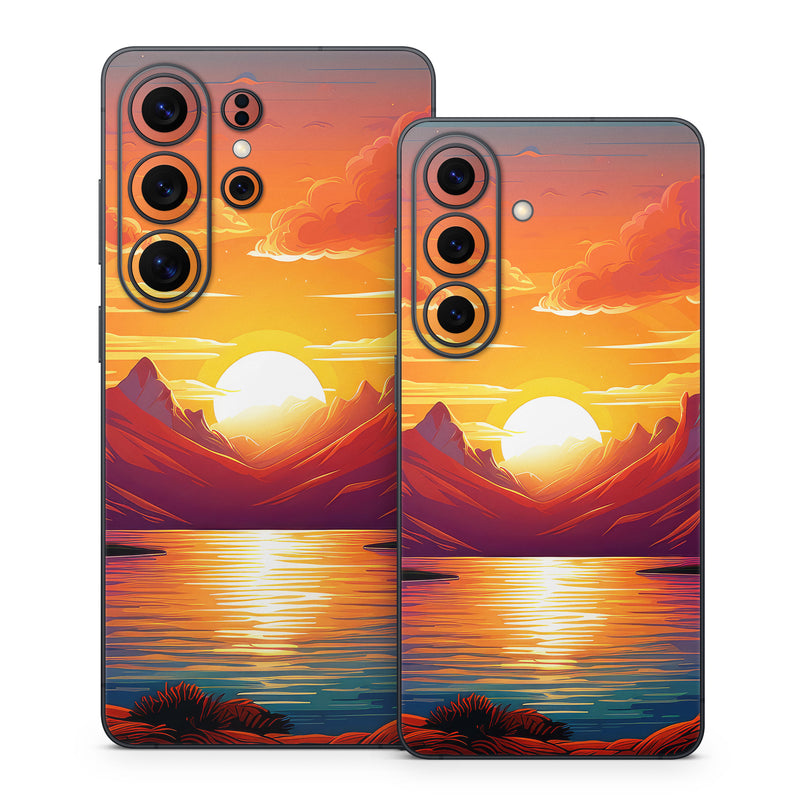 iStyles Samsung Galaxy S26 Series Skin design of Water, Cloud, Sky, Ecoregion, Afterglow, Light, World, Nature, Natural landscape, Mountain, with red, orange, yellow, blue, purple colors, and tagged with nature, mountain, landscape, clouds, sun, sunset, reflection, lake, sea.