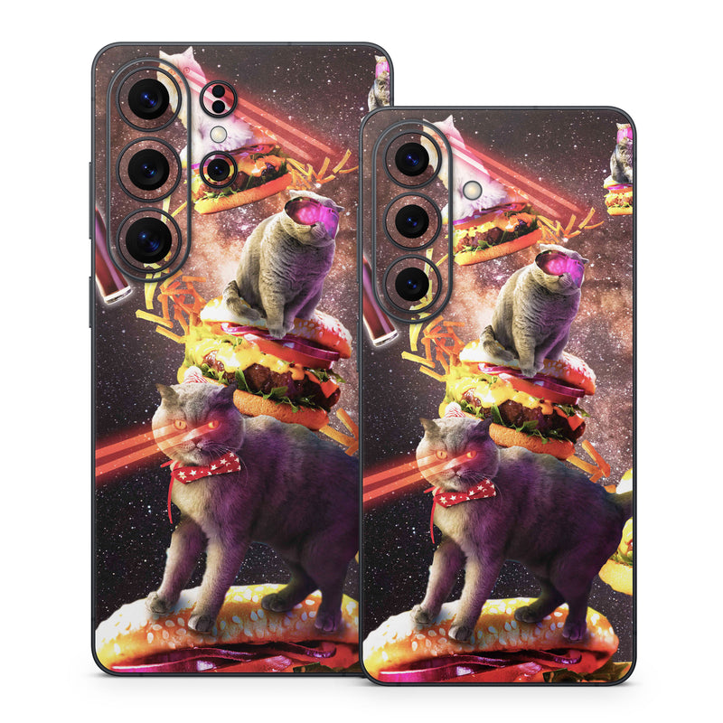 iStyles Samsung Galaxy S26 Series Skin design of Circus, Performance, Event, Graphic design, Art, Illustration, Fictional character, with black, white, purple, brown, gray, yellow, green colors, and tagged with animals, fantasy, space, objects, animal, animals, burger, cat, cats, eat, food, galaxy, lasers, space, universe.