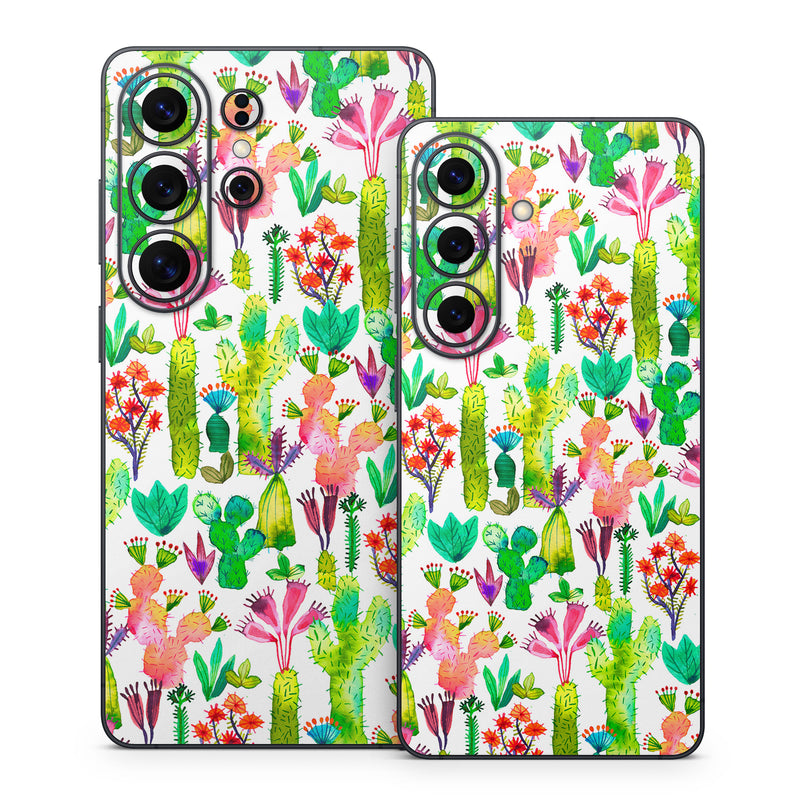 iStyles Samsung Galaxy S26 Series Skin design of Pattern, Floral design, Plant, Wildflower, Wrapping paper, with white, green, red, purple, pink, black colors, and tagged with patterns, nature, flowers, abstract, abstract, bright, cactus, colorful, nature, plants, watercolor.