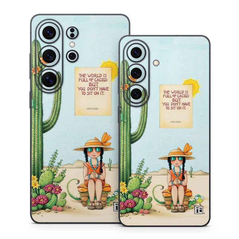 iStyles Samsung Galaxy S26 Series Skin design of Cartoon, Cactus, Illustration, Animated cartoon, Plant, Vegetable, Fictional character, Art, with green, yellow, pink, orange, brown colors, and tagged with people, animals, flowers, nature.