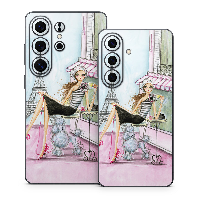 iStyles Samsung Galaxy S26 Series Skin design of Pink, Illustration, Sitting, Konghou, Watercolor paint, Fashion illustration, Art, Drawing, Style, with gray, purple, blue, black, pink colors, and tagged with people, animals, objects, urban, fashion.