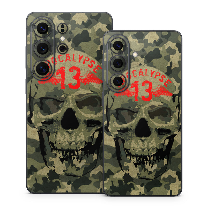 iStyles Samsung Galaxy S26 Series Skin design of Bone, Jaw, Art, Font, Skull, Snout, Visual arts, Pattern, Graphics, Graphic design, with black, green, red colors, and tagged with skulls, signs, military, patterns, fantasy, apocalypse, thirteen, military, camo.