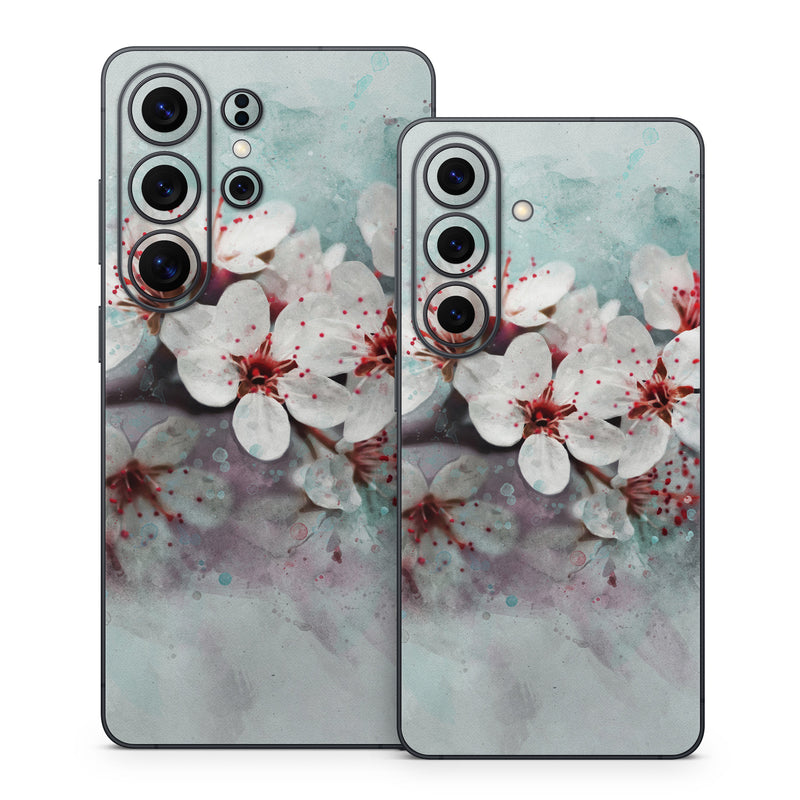 iStyles Samsung Galaxy S26 Series Skin design of Blossom, Flower, Cherry blossom, Watercolor paint, Plant, Spring, Pink, Petal, Branch, Painting, with white, gray, red, pink, purple, blue colors, and tagged with flowers, cherryblossom, cherryblossoms, flower, flowers, tree, trees, watercolor.