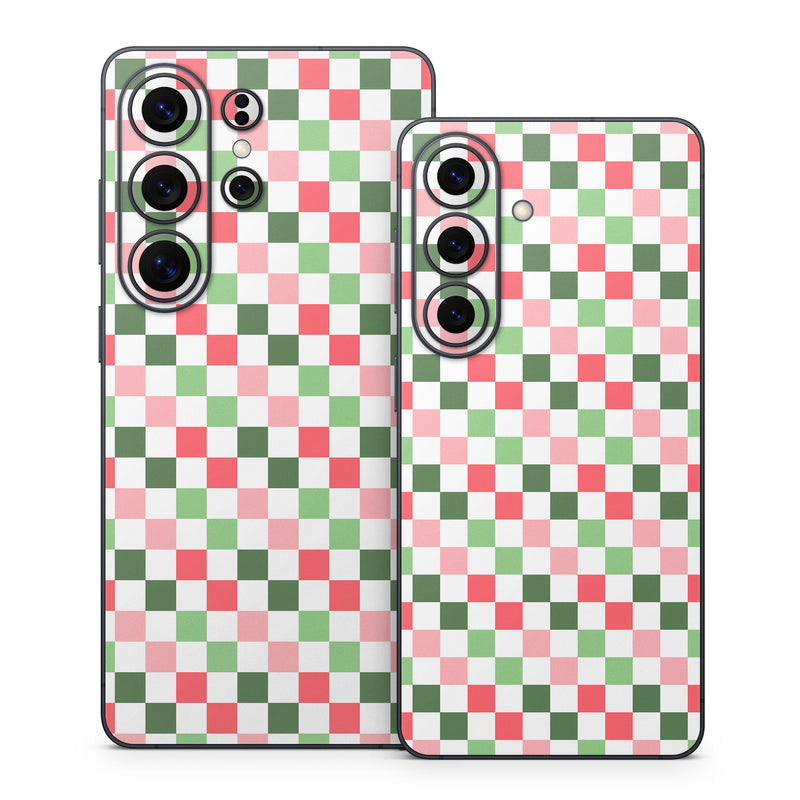 iStyles Samsung Galaxy S26 Series Skin design of Red, Design, Graphics, with white, green, red, pink colors, and tagged with patterns, noel, christmas, gift, wrap, squares, wrapping, paper.