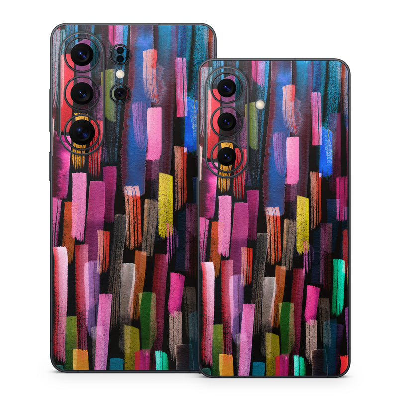 iStyles Samsung Galaxy S26 Series Skin design of Colorfulness, Textile, Art, Wood, Line, Material property, Font, Pattern, Tints and shades, Magenta, with black, blue, green, red, pink, yellow, orange, white, gray colors, and tagged with patterns, watercolors, brush, patterns.
