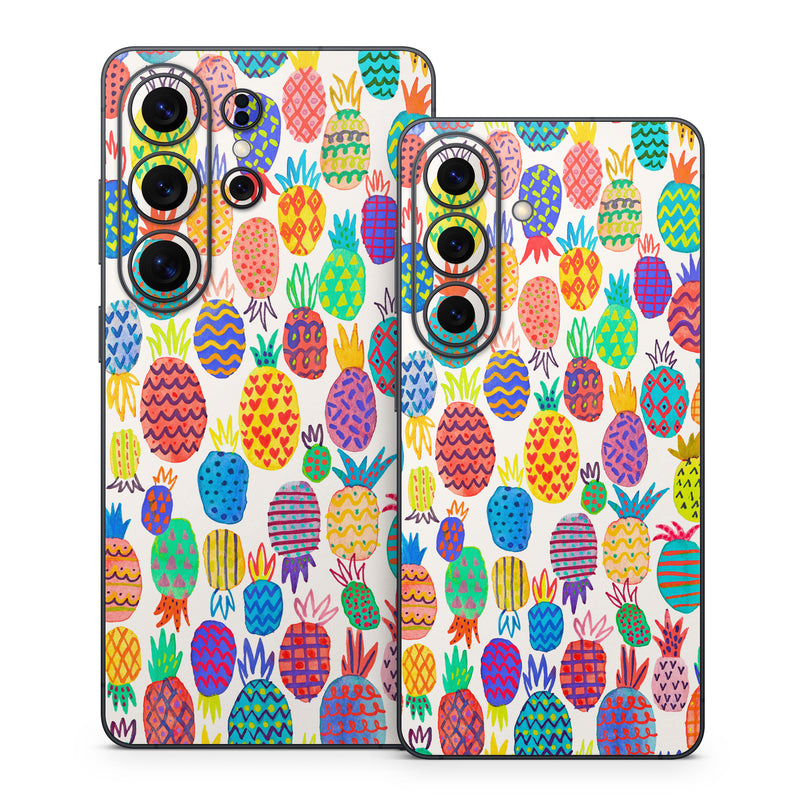 iStyles Samsung Galaxy S26 Series Skin design of Colorfulness, Textile, Art, Line, Circle, Symmetry, Pattern, Electric blue, Visual arts, Design, with white, red, blue, green, yellow, purple, pink colors, and tagged with patterns, objects, color, colorful, food, fruit, paint, pineapple, pineapples, summer, tropic, tropical, vacation.
