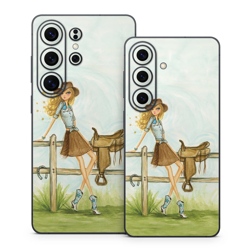 iStyles Samsung Galaxy S26 Series Skin design of Cartoon, Illustration, Art, Watercolor paint, Footwear, Fashion illustration, Grass, Drawing, Painting, Plant, with gray, green, red, black colors, and tagged with people, nature, objects.