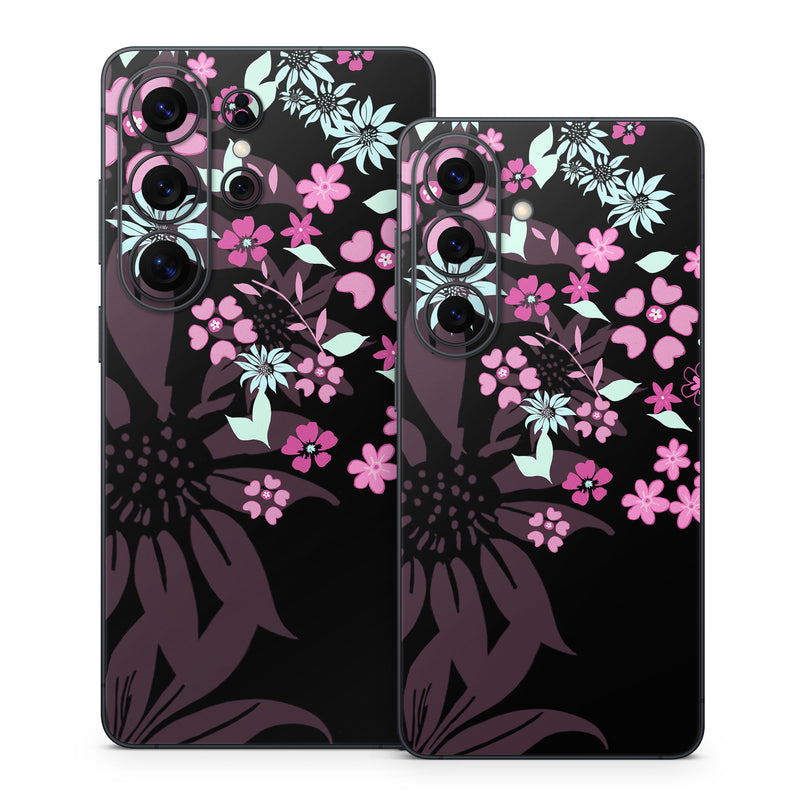 iStyles Samsung Galaxy S26 Series Skin design of Pink, Pattern, Flower, Plant, Botany, Petal, Floral design, Design, Pedicel, Graphic design, with black, gray, purple, green, red, pink colors, and tagged with flowers, abstract, patterns.