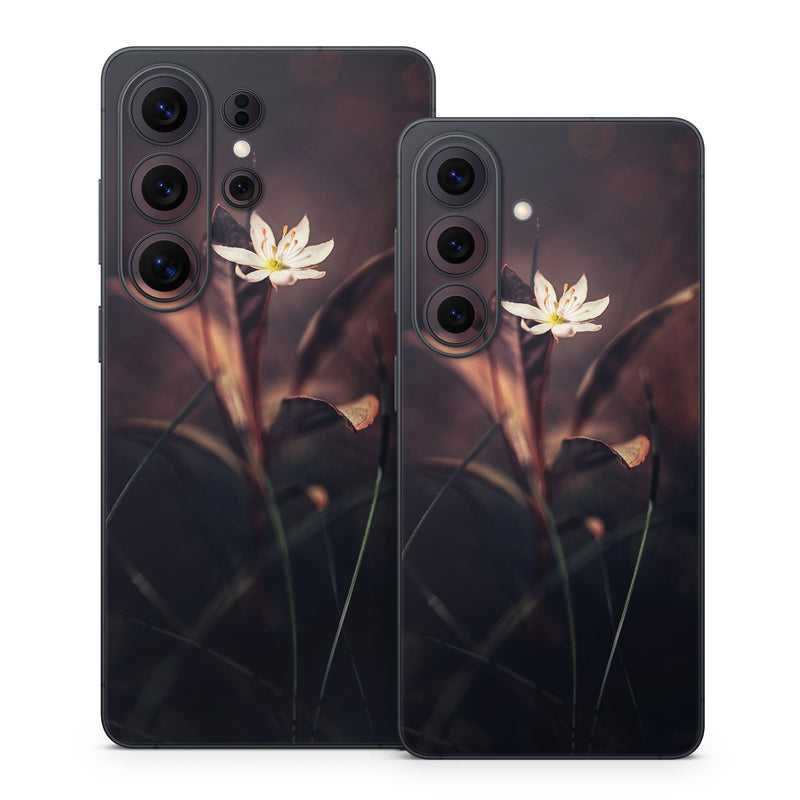iStyles Samsung Galaxy S26 Series Skin design of Flower, Yellow, Light, Plant, Sky, Still life photography, Wildflower, Petal, Darkness, Spring, with black, red colors, and tagged with nature, flowers.