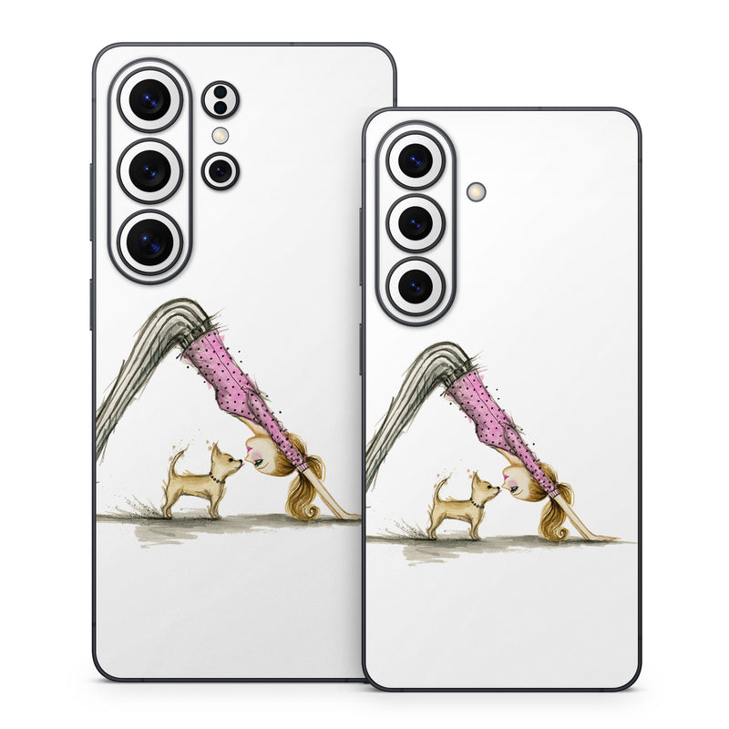 iStyles Samsung Galaxy S26 Series Skin design of Drawing, Illustration, with white, pink, black, white, brown, yellow colors, and tagged with people, fineart, fashion, animals, animals, dog, fashion, fitness, yoga.