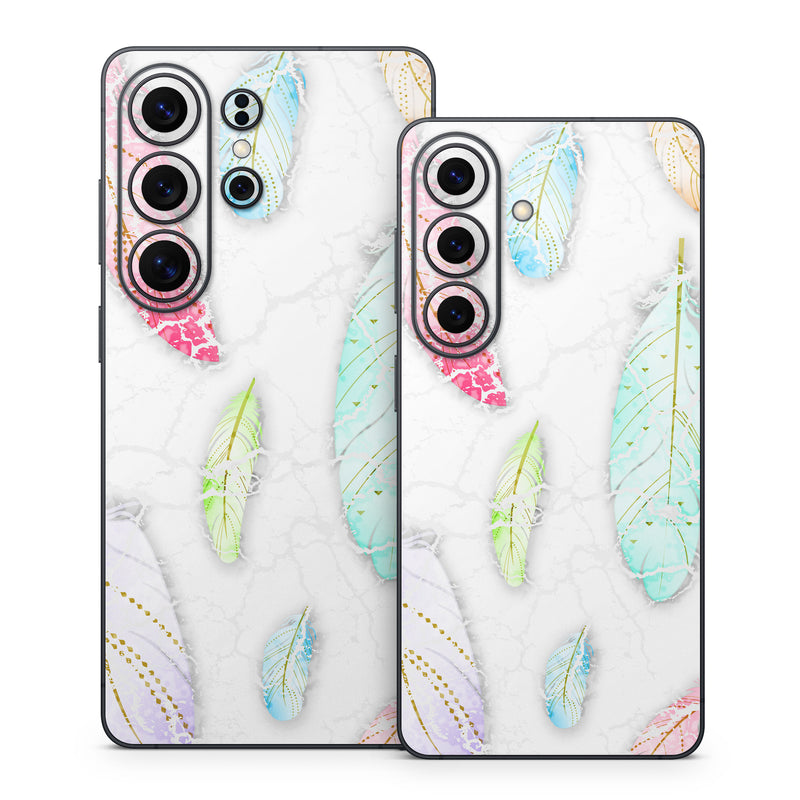 iStyles Samsung Galaxy S26 Series Skin design of Feather, Fashion accessory, Jewellery, with red, blue, green, purple, white, brown colors, and tagged with patterns, objects, aztec, color, feather, feathers, marble, pastel, watercolor.
