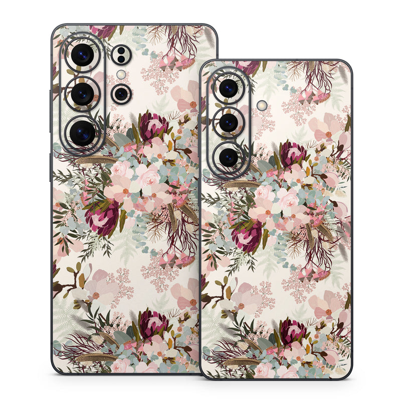 iStyles Samsung Galaxy S26 Series Skin design of Pink, Pattern, Lilac, Flower, Plant, Petal, Floral design, Textile, Design, Blossom, with white, red, pink, blue, brown colors, and tagged with patterns, flowers, nature, bouquet, filigree, floral, flower, flowers, pastel.