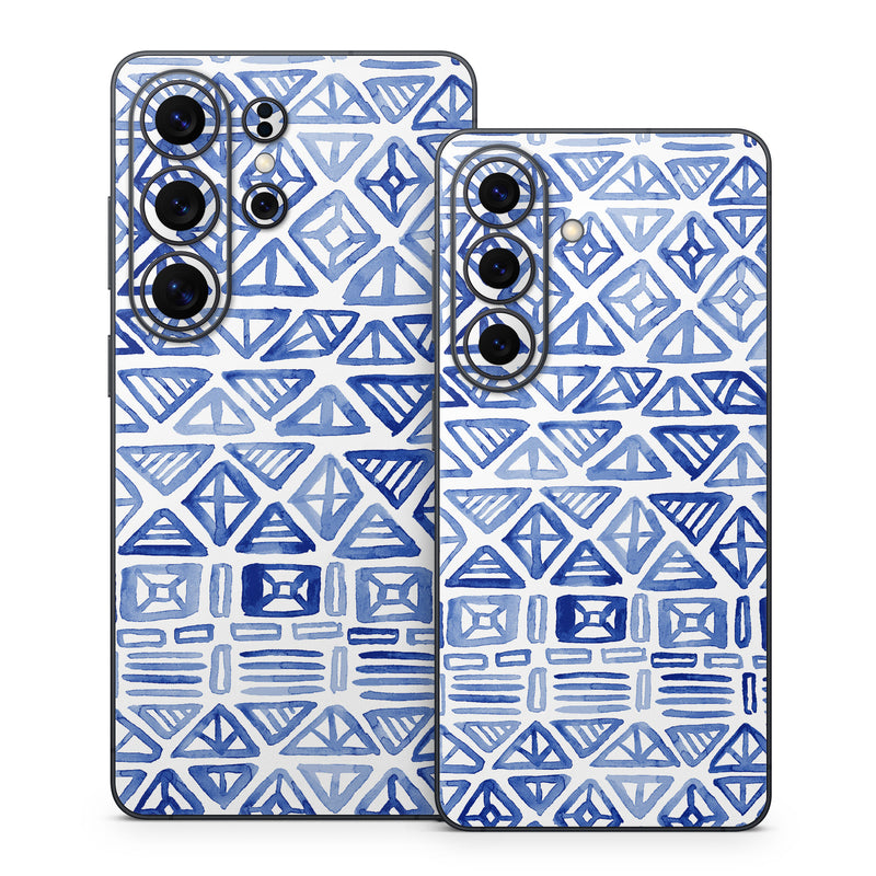 iStyles Samsung Galaxy S26 Series Skin design of Pattern, Line, Design, Symmetry, Visual arts, Parallel, with white, blue colors, and tagged with patterns, blue, geometric, magpiemoon, pattern, tribal, watercolor, white.