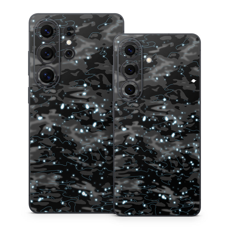 iStyles Samsung Galaxy S26 Series Skin design of Black, Water, Space, Black-and-white, Granite, with blue, white, gray, blue colors, and tagged with space, patterns, black, blue, camo, galaxy, space, stars, universe.