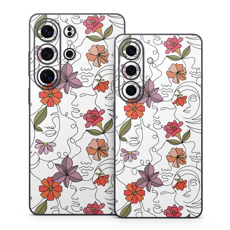 iStyles Samsung Galaxy S26 Series Skin design of Flower, Plant, White, Product, Petal, Branch, Rectangle, Botany, Textile, Creative arts, with white, red, purple, green, orange colors, and tagged with patterns, flowers, people, drawing, flowers, outline, pattern, women.
