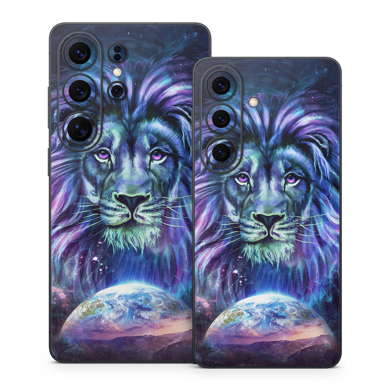 iStyles Samsung Galaxy S26 Series Skin design of Lion, Felidae, Purple, Wildlife, Big cats, Illustration, Darkness, Space, Painting, Art, with purple, blue, green, black, white, red colors, and tagged with fantasy, space, animals, animals, earth, galactic, lion, sci-fi, space.