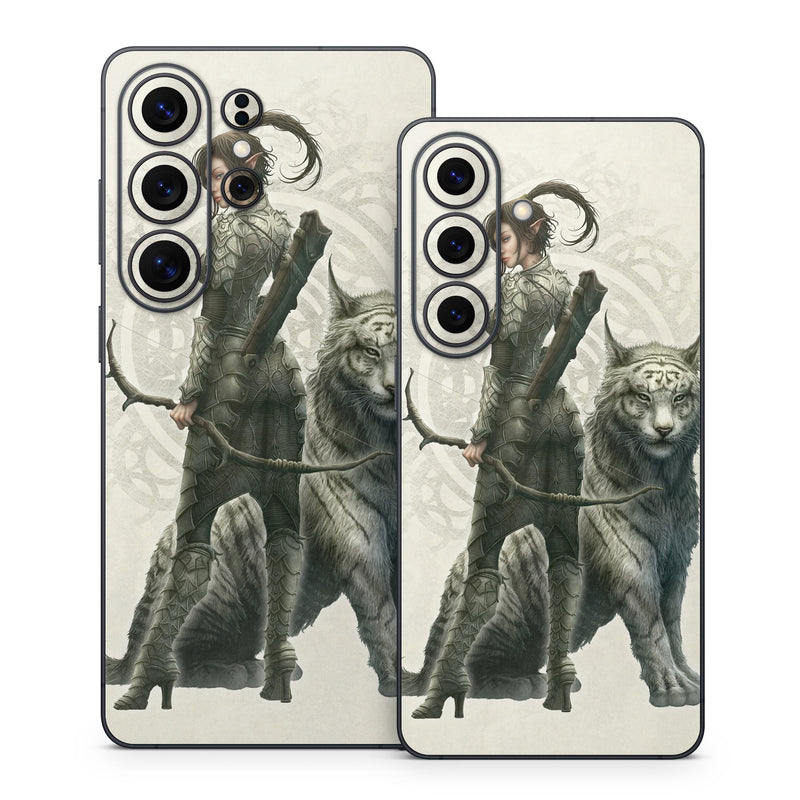 iStyles Samsung Galaxy S26 Series Skin design of Illustration, Fictional character, Drawing, Woman warrior, Art, Mythology, Sketch, with gray, black, pink, yellow, green colors, and tagged with fantasy, animals, objects, people.