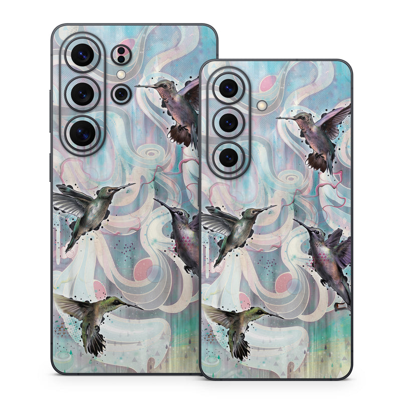 iStyles Samsung Galaxy S26 Series Skin design of Bird, Watercolor paint, Illustration, Hummingbird, Painting, Art, Wing, Fictional character, Acrylic paint, Perching bird, with gray, blue, black colors, and tagged with animals, patterns.
