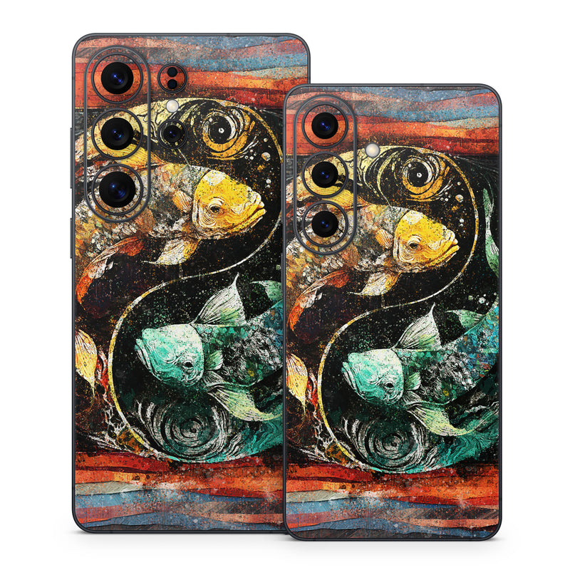 iStyles Samsung Galaxy S26 Series Skin design of Art paint, Paint, Painting, Art, Creative arts, Pattern, Visual arts, Mural, Illustration, Graphics, with black, red, blue, yellow, green, orange, purple colors, and tagged with animals, signs, asian, koi, yin, yang.