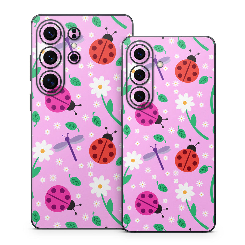 iStyles Samsung Galaxy S26 Series Skin design of Pink, Pattern, Design, Magenta, Clip art, Plant, Visual arts, Ladybug, Child art, Illustration, with pink, white, purple, gray, red, blue colors, and tagged with flowers, animals, patterns.