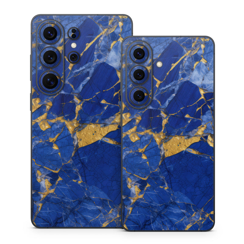 iStyles Samsung Galaxy S26 Series Skin design of Liquid, Blue, Azure, Fluid, Pattern, Electric blue, Tints and shades, Transparent material, Water, Symmetry, with blue, yellow, brown, orange colors, and tagged with patterns, lookslike, deep-blue, metamorphic, rock, semi-precious, stone, antiquity, intense, blue, color.