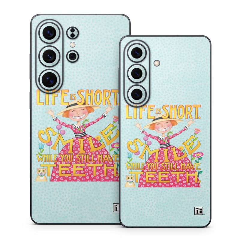 iStyles Samsung Galaxy S26 Series Skin design of Text, Poster, Font, Illustration, Happy, Art, with blue, yellow, pink, green, orange, red, white, black colors, and tagged with signs, people, flowers, animals, cat, funny, humor.