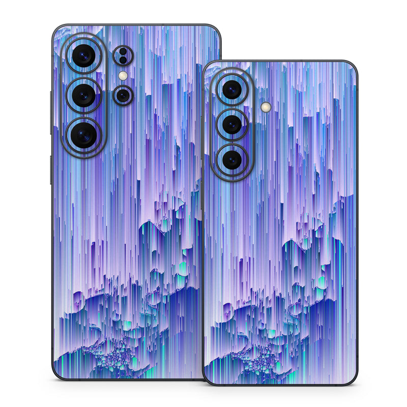 iStyles Samsung Galaxy S26 Series Skin design of Blue, Purple, Lavender, Ice, with blue, purple colors, and tagged with abstract, space, blue, geometric, geometry, glitch, green, line, pastel, purple, space, teal.