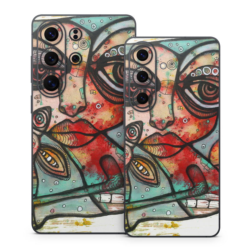 iStyles Samsung Galaxy S26 Series Skin design of Modern art, Art, Painting, Illustration, Visual arts, Psychedelic art, Acrylic paint, Watercolor paint, Graffiti, Drawing, with gray, black, red, green, blue, white colors, and tagged with people, flowers.