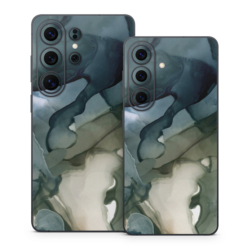iStyles Samsung Galaxy S26 Series Skin design of Azure, Petal, Organism, Grey, Art, Pattern, Beauty, Painting, Close-up, Tree, with black, blue, green, white colors, and tagged with patterns, abstract, blue, blues, marble, paint, painting, water, watercolor.