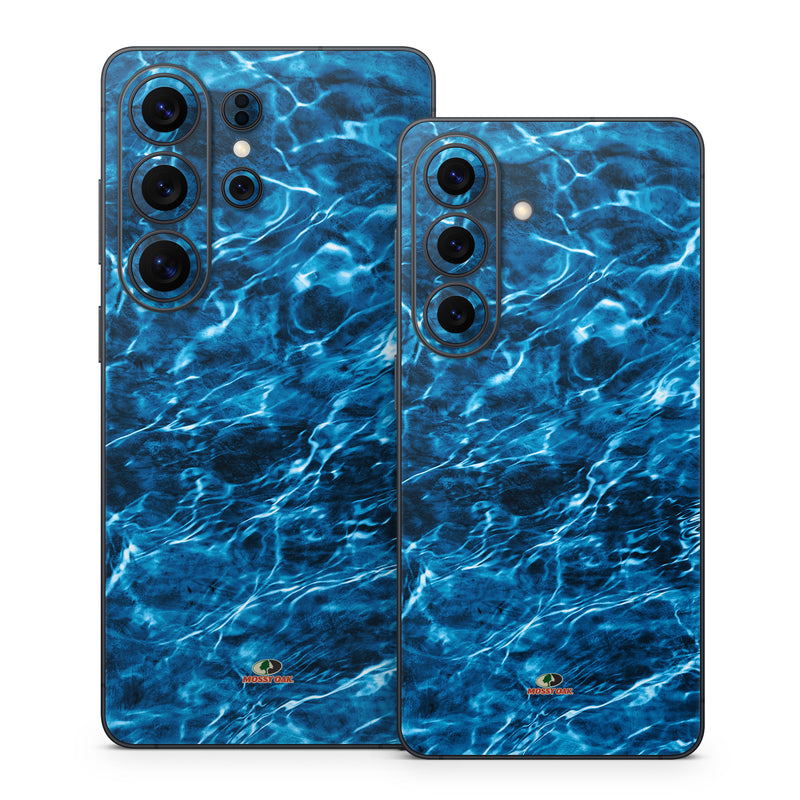 iStyles Samsung Galaxy S26 Series Skin design of Blue, Water, Aqua, Turquoise, Azure, Electric blue, Sky, Pattern, Sea, Ocean, with blue, black colors, and tagged with lookslike, patterns, nature, camo, hunter, hunting, mossyoak, ocean, water.