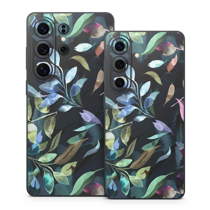 iStyles Samsung Galaxy S26 Series Skin design of Flower, Leaf, Plant, Botany, Organism, Line, Art, Petal, Groundcover, Terrestrial plant, with black, blue, green, purple, pink, red, white colors, and tagged with patterns, nature, leaves, fall, pattern.