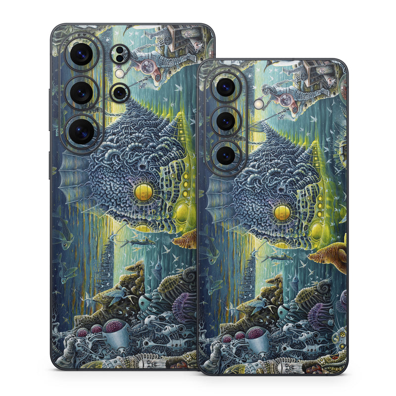 iStyles Samsung Galaxy S26 Series Skin design of Organism, Water, Illustration, Art, Painting, Cg artwork, Fiction, Fictional character, Marine biology, Mythology, with black, gray, blue, green colors, and tagged with animals, fantasy.