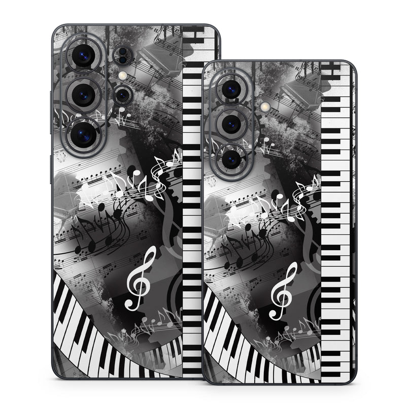 iStyles Samsung Galaxy S26 Series Skin design of Music, Monochrome, Black-and-white, Illustration, Graphic design, Musical instrument, Technology, Musical keyboard, Piano, Electronic instrument, with black, gray, white colors, and tagged with patterns, music.