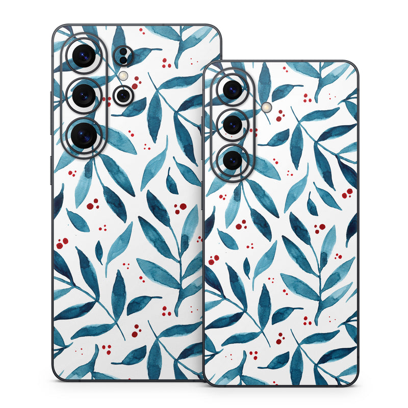 iStyles Samsung Galaxy S26 Series Skin design of White, Azure, Textile, Art, Aqua, Material property, Symmetry, Creative arts, Pattern, Electric blue, with white, blue, red colors, and tagged with patterns, nature, branches, leaves.