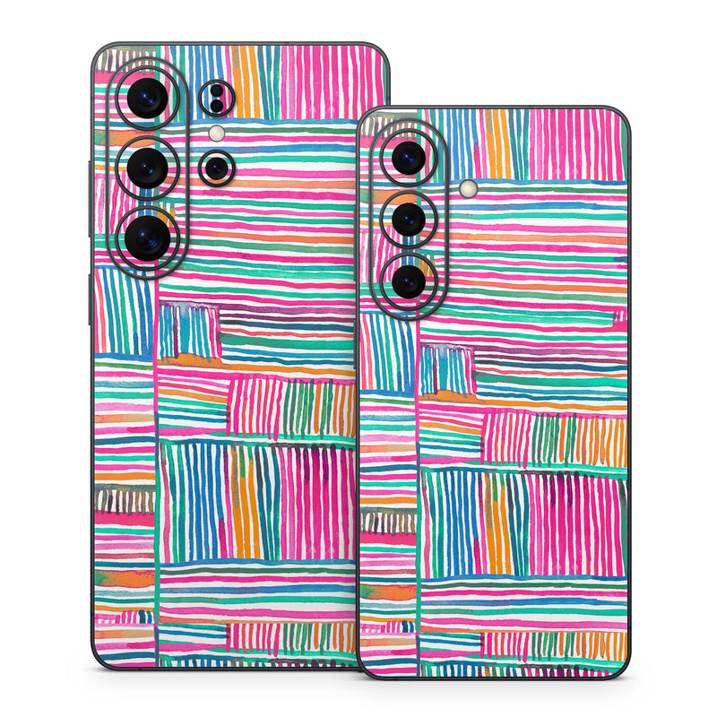 iStyles Samsung Galaxy S26 Series Skin design of Colorfulness, Product, Rectangle, Azure, Textile, Art, Aqua, Material property, Magenta, Tints and shades, with white, pink, orange, green, blue, yellow colors, and tagged with patterns, stripes, pattern.