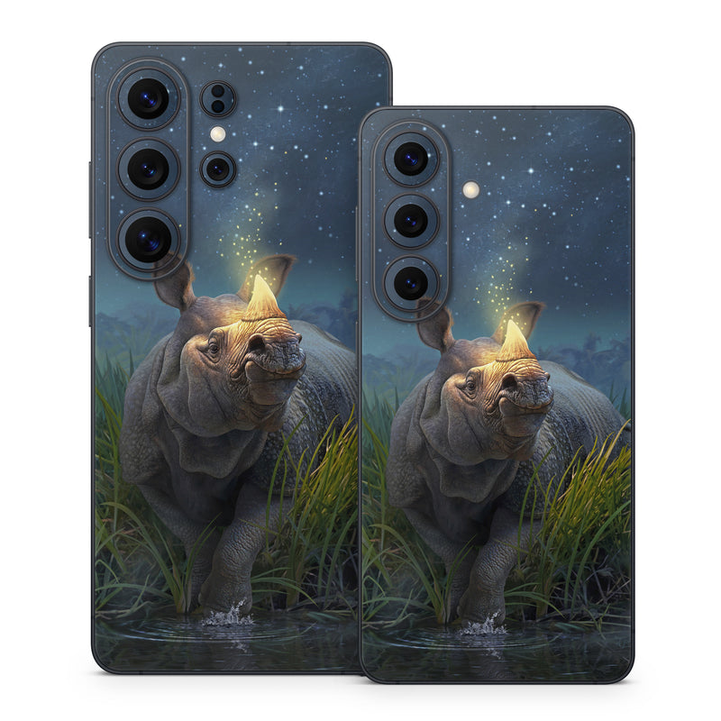 iStyles Samsung Galaxy S26 Series Skin design of Wildlife, Sky, Photography, Grass, Fawn, with blue, green, gray, yellow, white colors, and tagged with animals, nature, animals, fantasy, rhino, sci-fi.